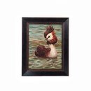 This original oil painting is of the wonderful Australasian crested grebe! Michael often see’s these fancy birds with their eye-catching crests, swimming around with cute little faces peeking out from under their wing feathers.