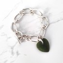 This beautiful chain link bracelet crafted by Anna Balasoglou is made from sterling silver and has a New Zealand greenstone (pounamu) heart charm.