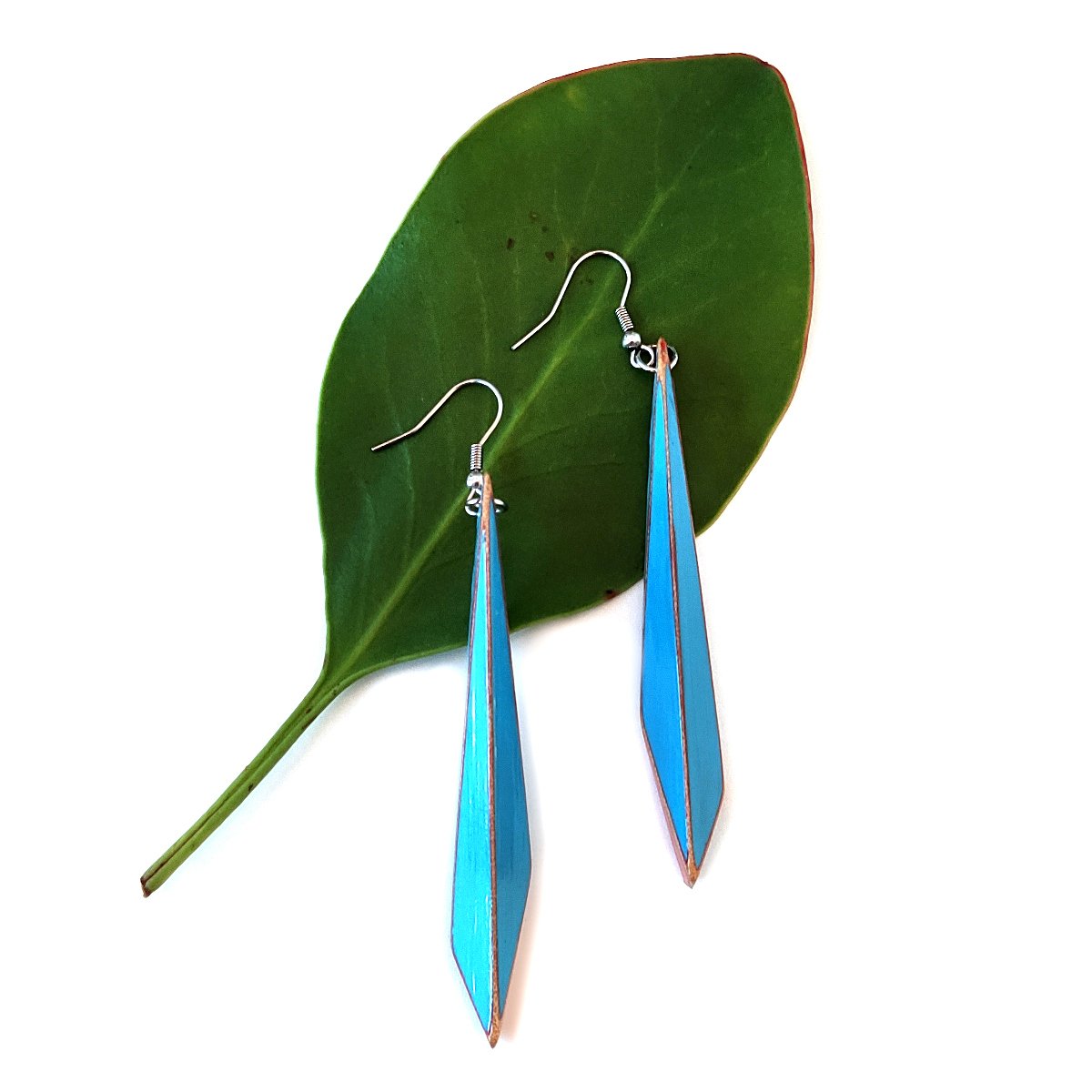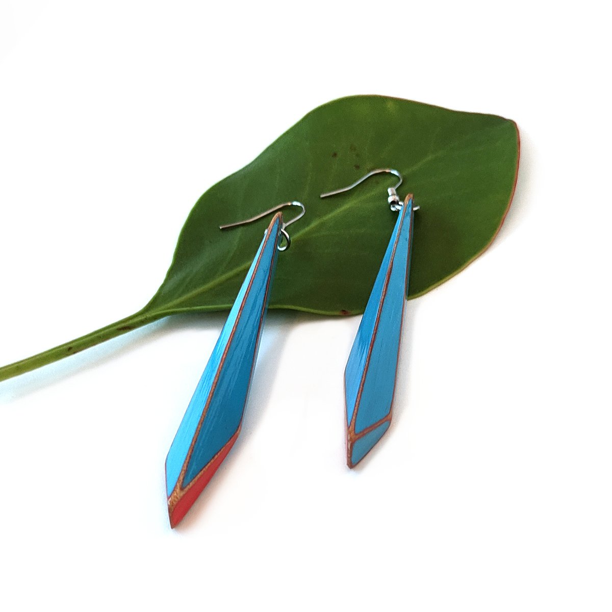 Liberation Jewellery are the masters of recycling - these beautiful wooden earrings are made from recycled Kauri. They’ve been carved into an elegant triangular shape and hang from hypo-allergenic stainless steel hooks.
