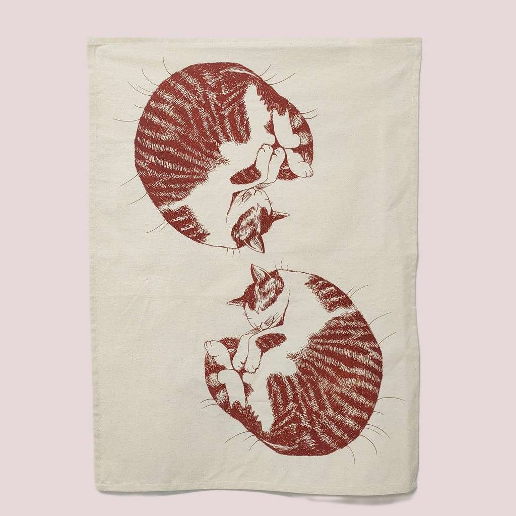 100 % natural (unbleached) ethically sourced cotton tea towel hand screen printed with Natty's hand drawn Cat Nap design.