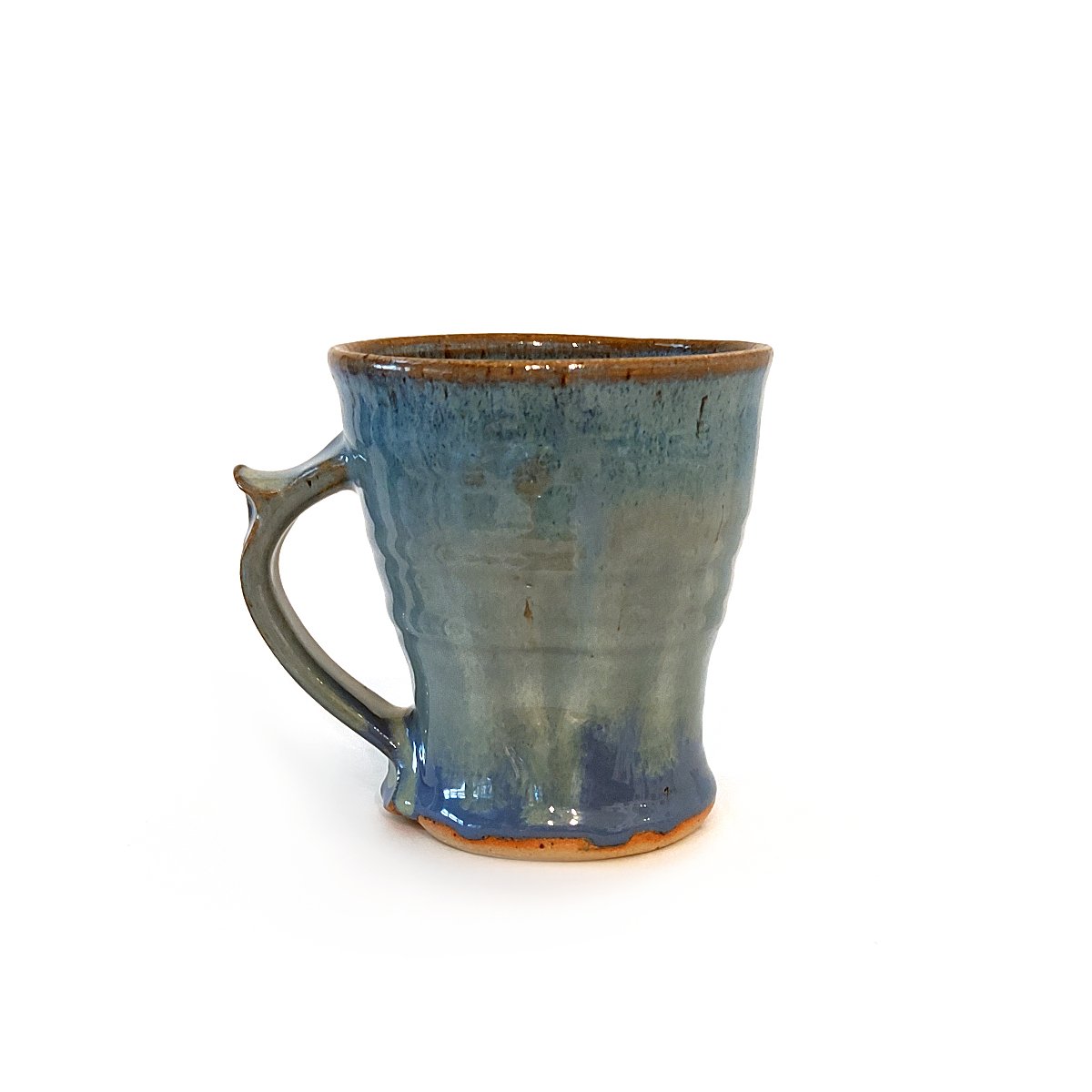 Elevate your morning ritual with this striking ceramic mug by Sarah Bromley. Featuring a rich blue glaze that flows in elegant, organic drips, this handcrafted piece is as comfortable to hold as it is beautiful to behold.