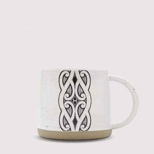 This beautifully designed mug, featuring artwork by Miriama Grace-Smith, is made of high-quality ceramic and comes with a wooden lid to keep your drink hot.
