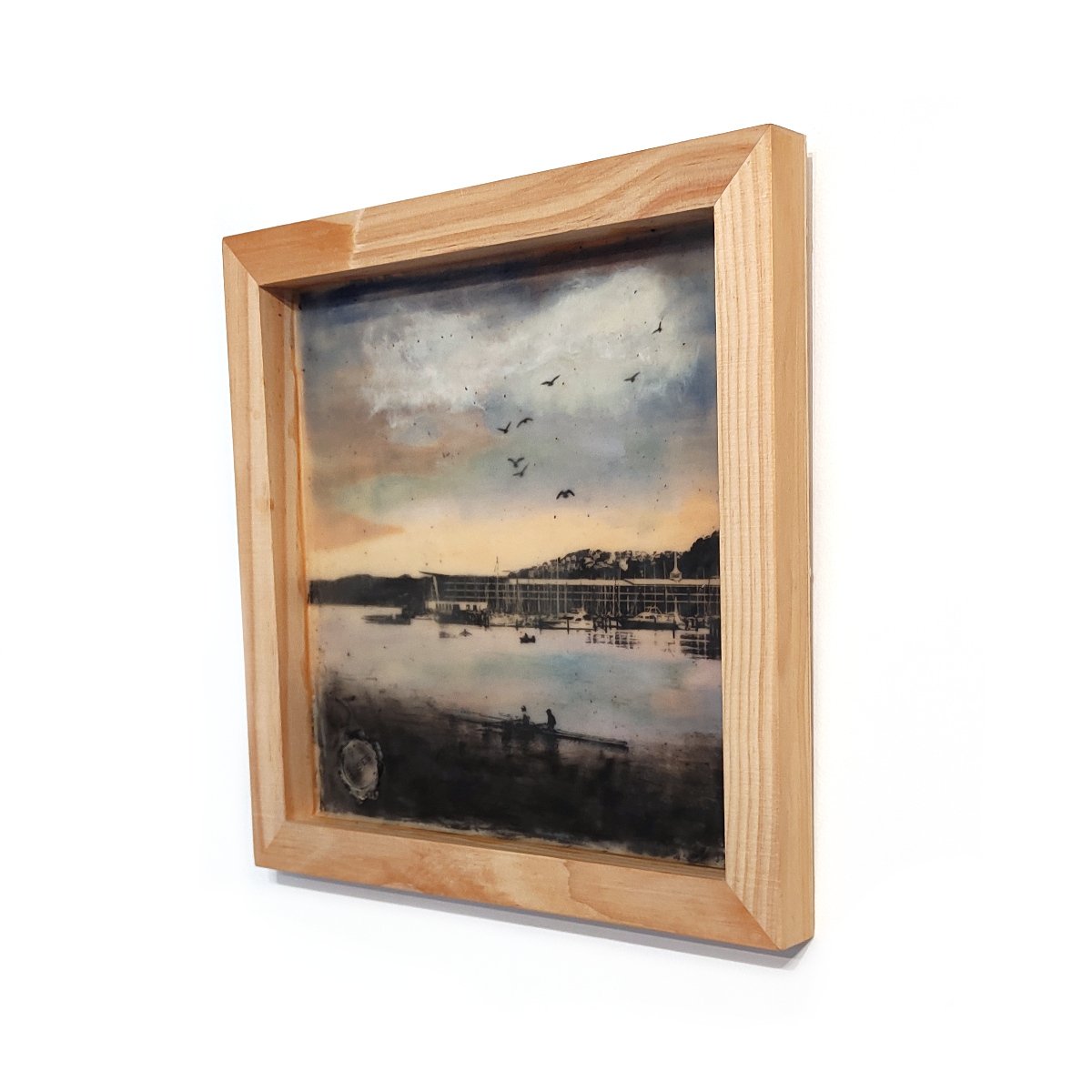 Local artist Kim Kobialko of Studio Reset brings a timeless perspective to Chaffers Square by layering molten encaustic wax over a black and white photograph. By fusing a heated blend of beeswax and resin onto the monochrome image, Kim adds a luminous, tactile depth that transforms the local scene into a rich, multidimensional work of art. The result is a striking contrast between the crispness of the photography and the organic, hand-worked texture of the wax.