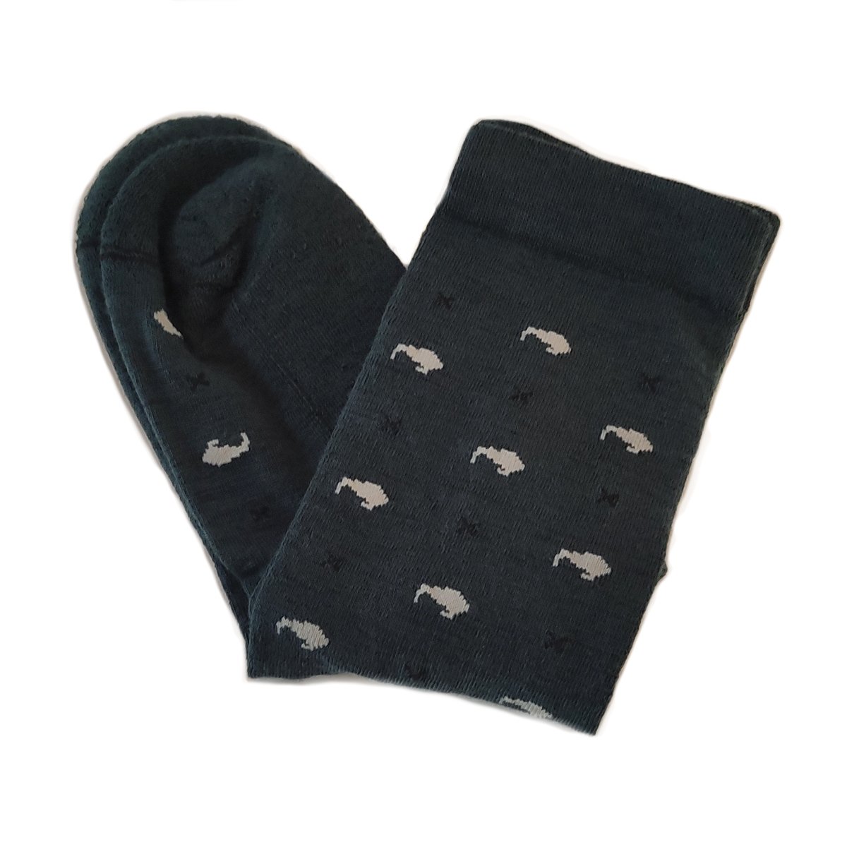 Dark green with white Kiwi & Black Cross Pattern. They incorporate a really fine padding at the base of the foot, and are very easy to wear being both fine and comfortable.