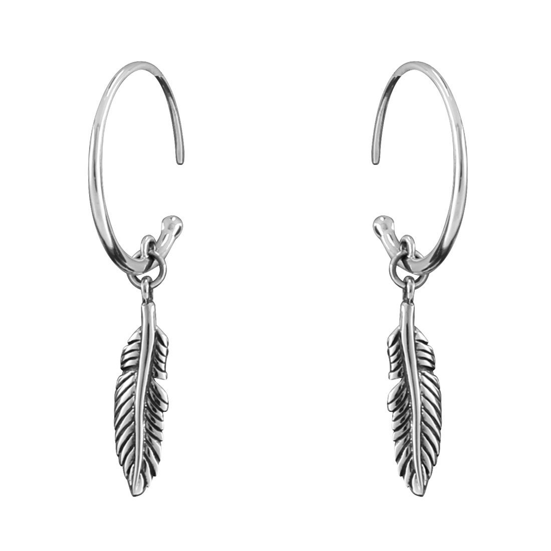 Feather Hoop Earrings Silver