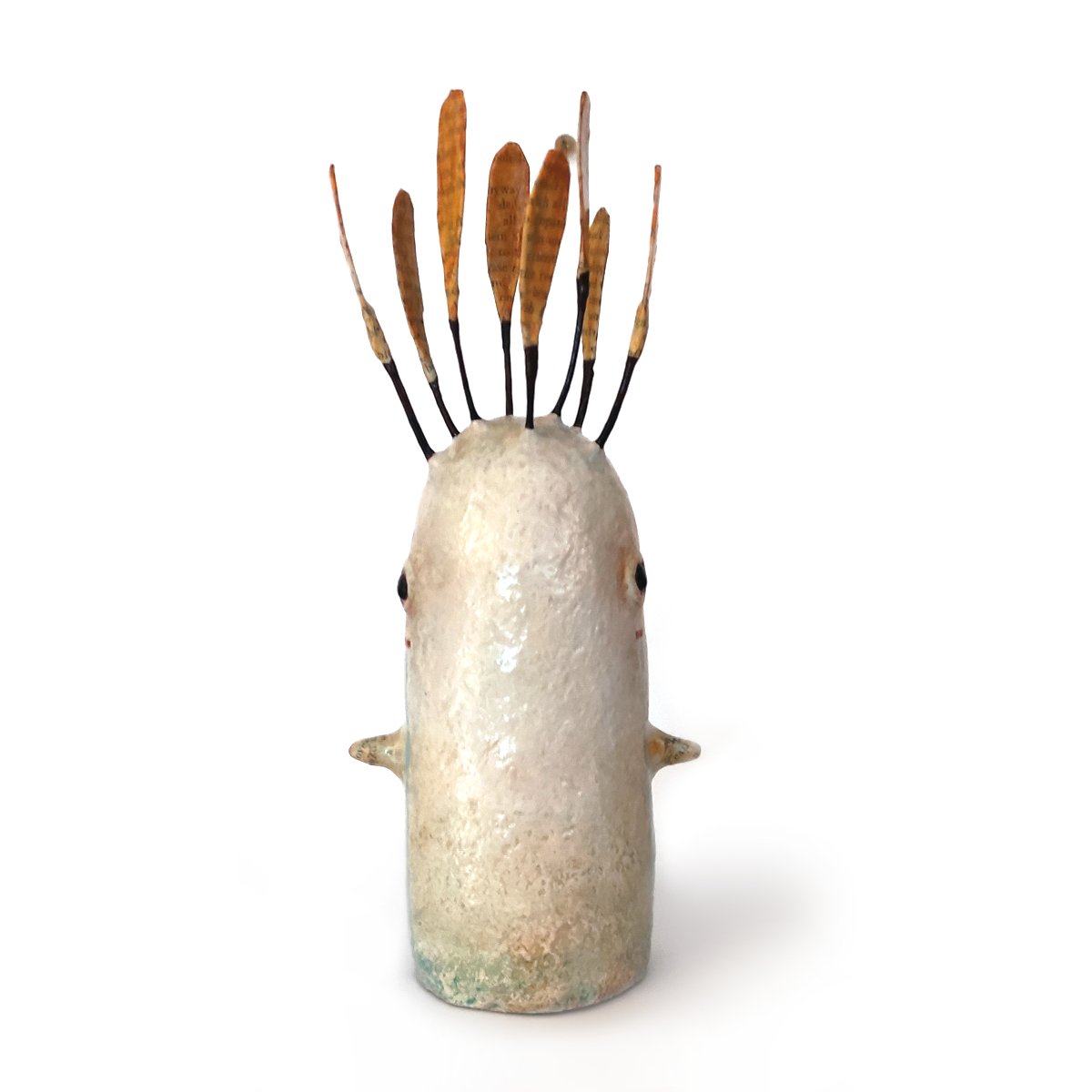 This paper mache sculpture has been handmade by Minu Freitag from beginning to end. The artwork is hand-sculpted using traditional paper mache techniques and recycled materials, individually painted with high-quality fluid acrylic paints, and finally varnished & signed. Each sculpture is one of its kind.
