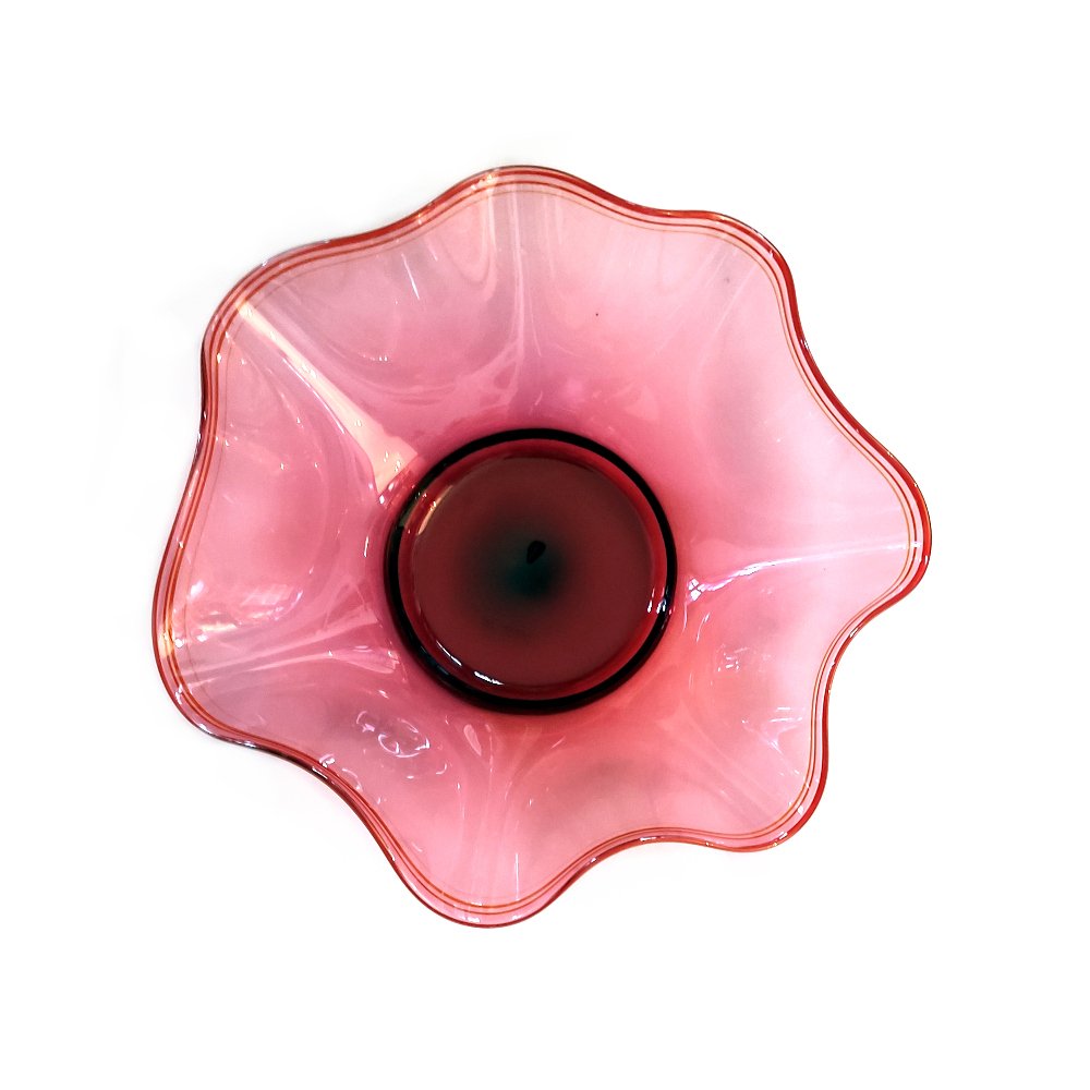 A true study in light and movement, this handblown fluted glass bowl by Michelle Weston is absolutely stunning. The beautifully defined fluted edge seems to ripple, capturing and refracting light to bring a dynamic, captivating energy to any space.