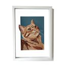 Each piece of art is meticulously constructed with hundreds of small torn pieces. The final effect can often be mistaken for hand painted work, but when approached closer, the viewer is surprised to discover it was created by a technique called collage.