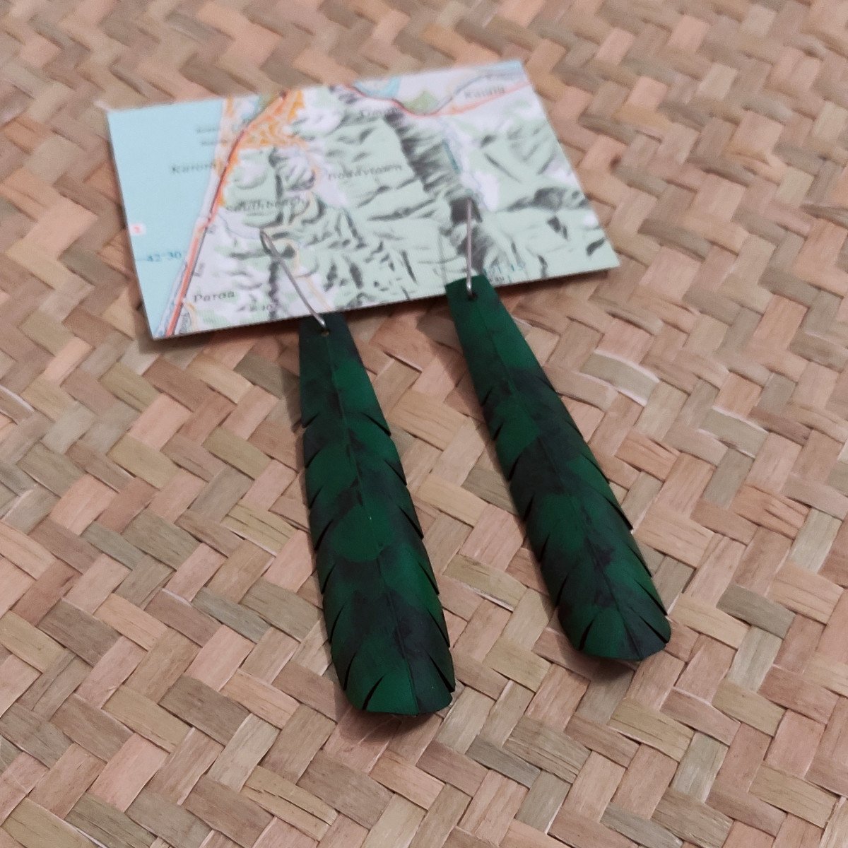 These feather earrings are lovingly hand-made from upcycled bicycle tyre inner tubes. The discarded inner tube is thoroughly cleaned and polished, then carefully coloured before the hooks are attached. This meticulous process results in these beautiful, unique earrings, a truly one-of-a-kind jewellery contributing to a better world.