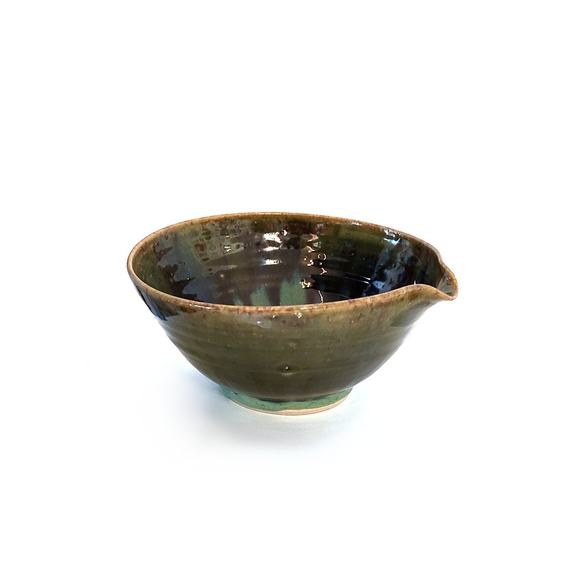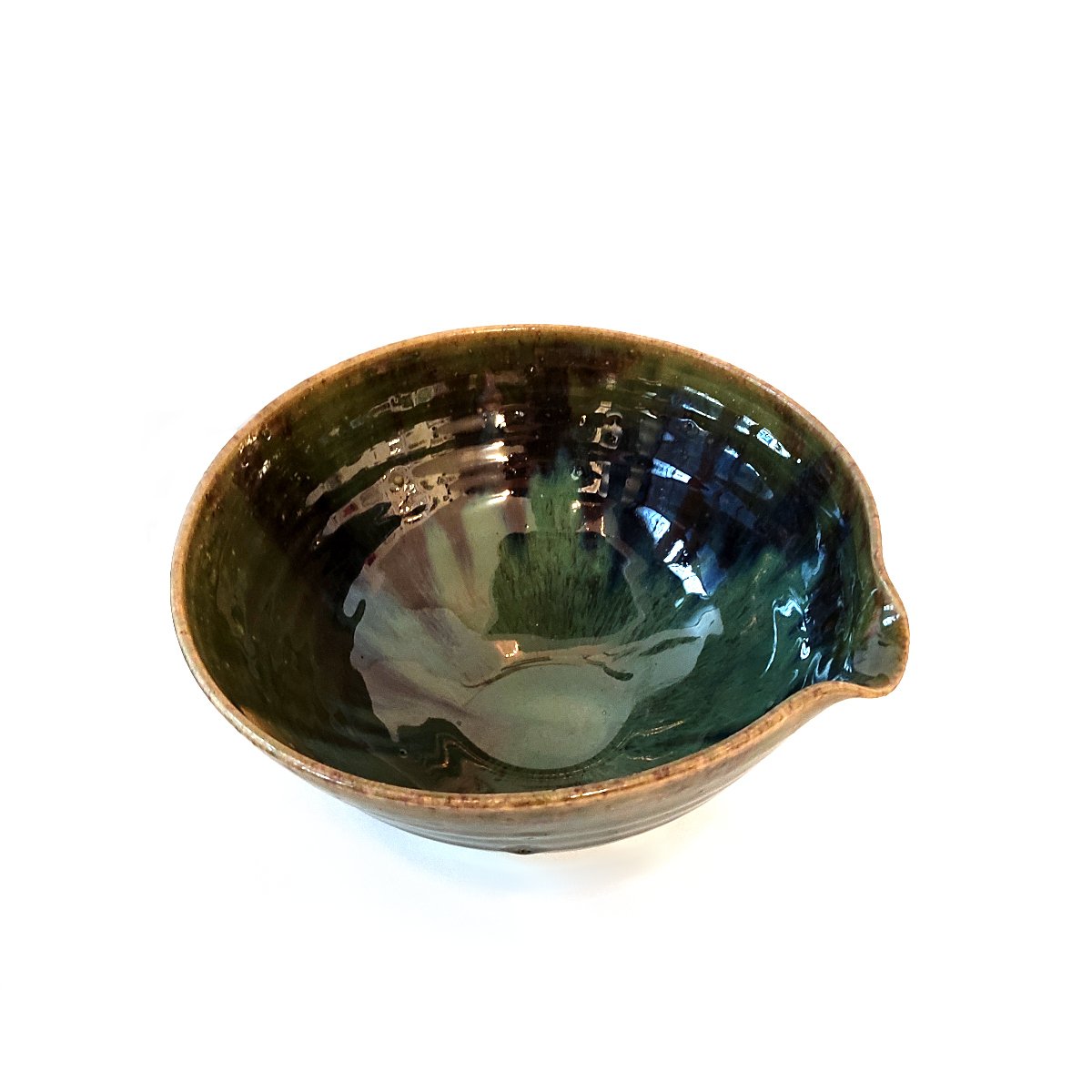 A handcrafted spouted bowl by ceramic artist Sarah Bromley. Finished in a brilliant, high-shine green glaze, this electric-fired piece perfectly balances artistic form with practical, pouring functionality.Height: 85mmDiameter: 175mmClick here for more info on Sarah Bromley to see more of the range