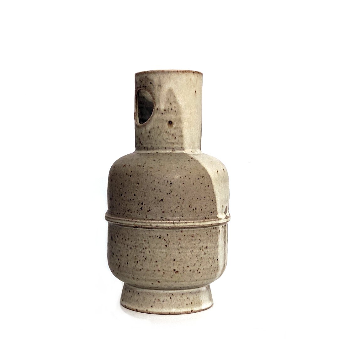 A playful nod to the classic Kiwi road trip and backyard summers of yesteryear. Hand-thrown on the wheel by local artist Anna Campbell, this ceramic gas bottle vase captures a sense of retro nostalgia in New Zealand stoneware. Finished in a grey matte glaze, they feel like a found treasure from a vintage caravan, reimagined as a contemporary sculpture for your shelves.