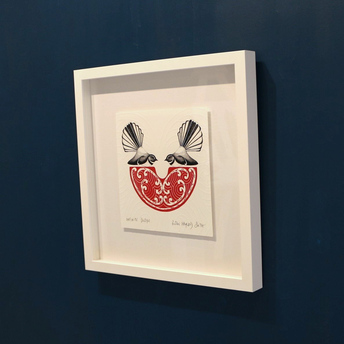 An open edition print (ie not limited) of an original art work by Susan Haywood in white frame.