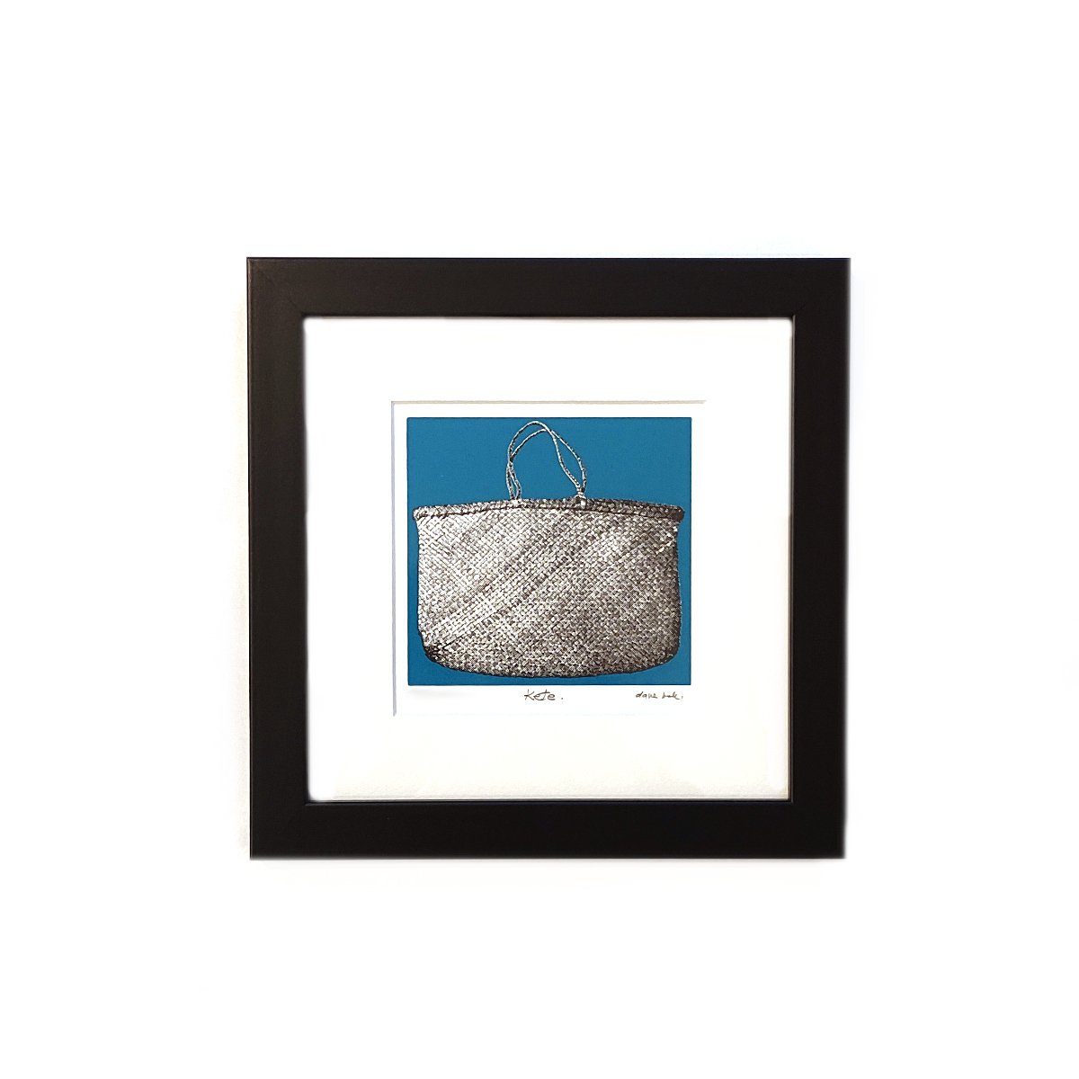 This limited edition screen print by New Zealand artist Dave Bell celebrates the Kete, a traditional basket woven by Māori using the leaves of native harakeke (flax). Expertly hand-printed, this piece utilises the finest archival inks on premium specialty papers from Italy and Germany, ensuring a lasting tribute to a cornerstone of New Zealand heritage.
