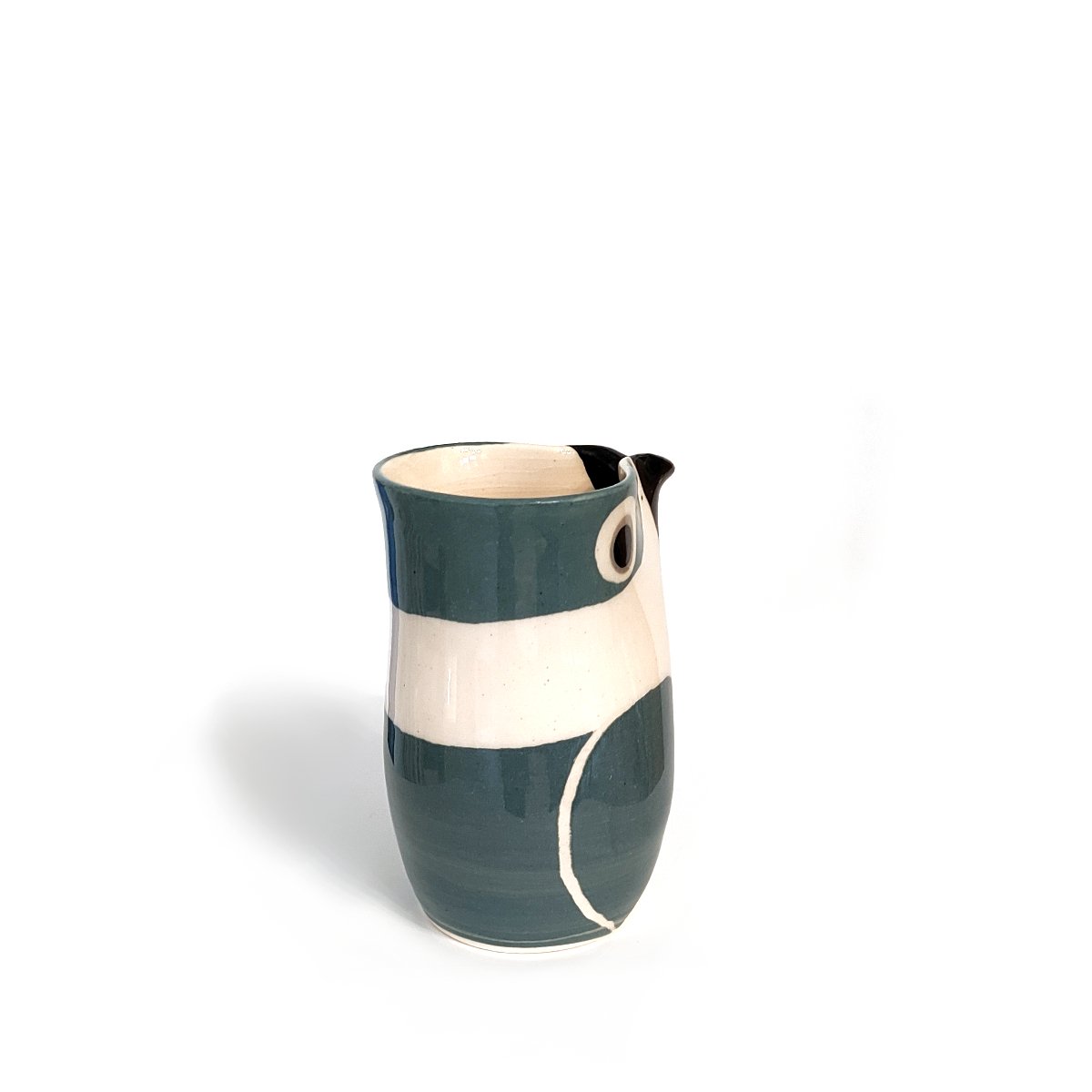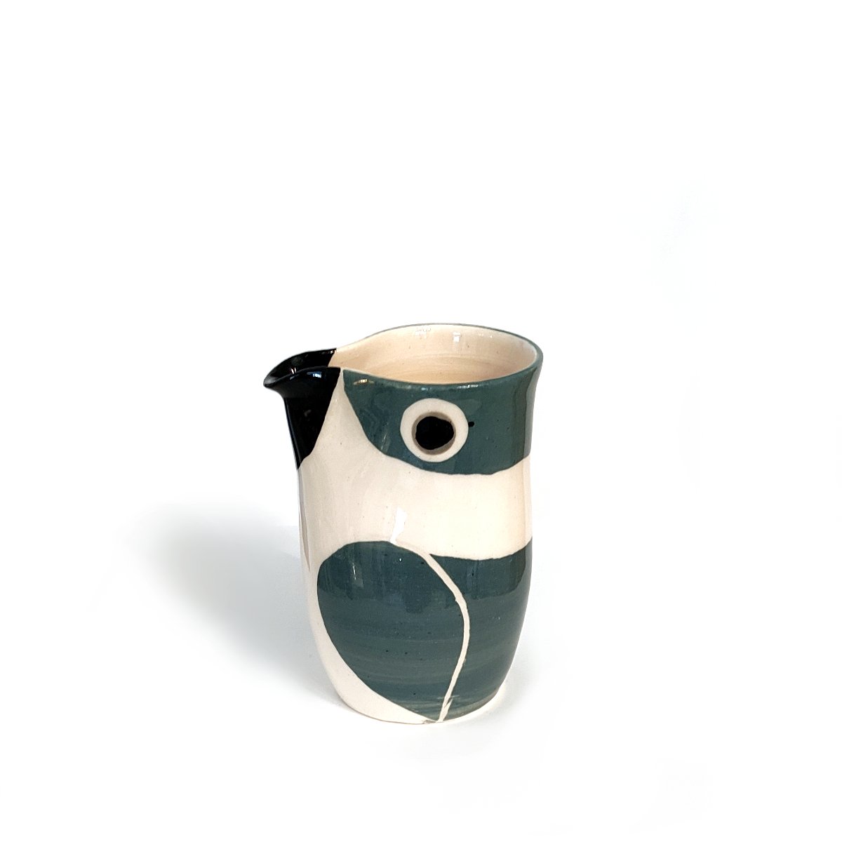 This fun Kingfisher bird jug / vase has been lovingly handcrafted by New Zealand ceramic artist Kairava Gullatz.
