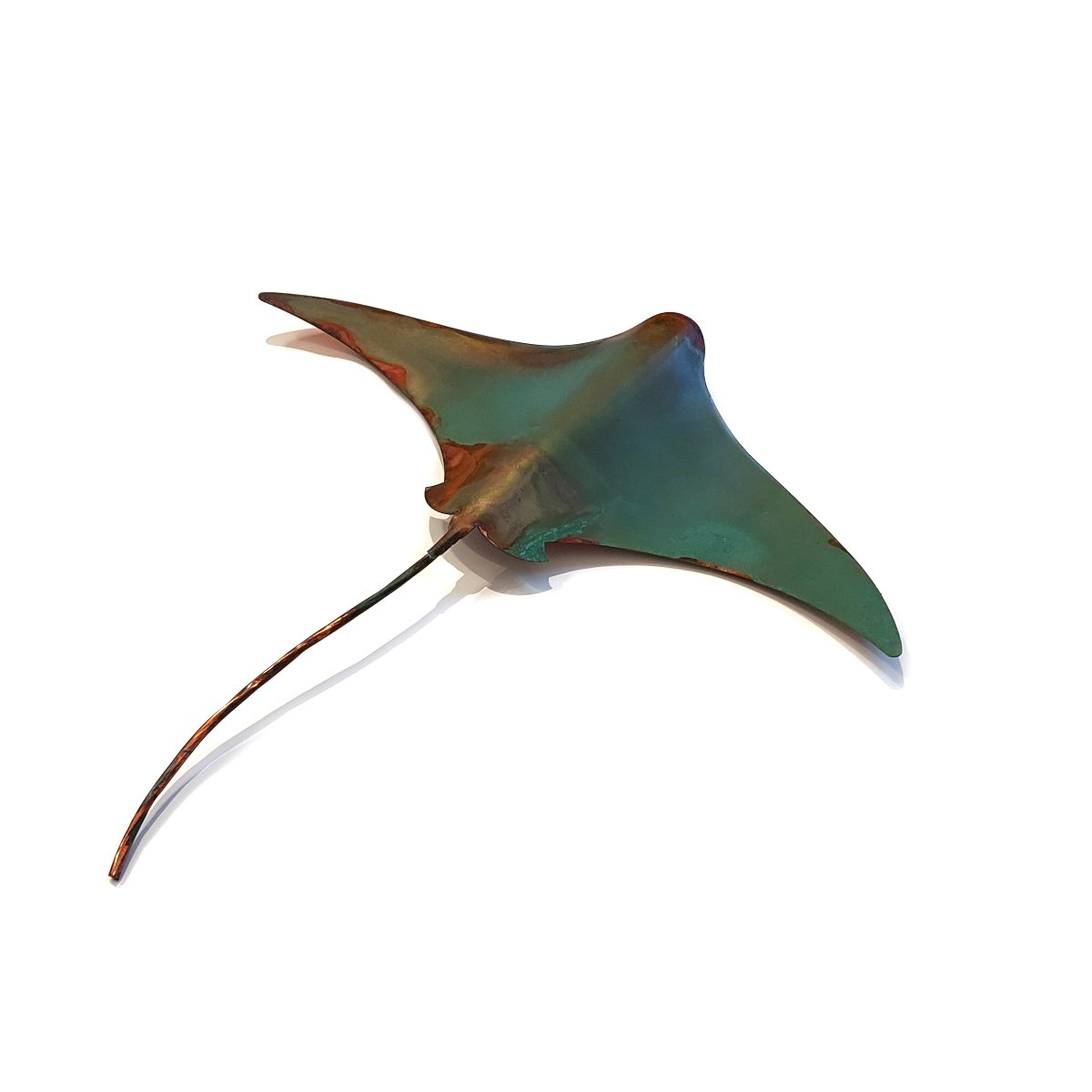 Crafted by Daniel Wright from recycled copper, this single stingrays is designed to bring a touch of the ocean to your wall.