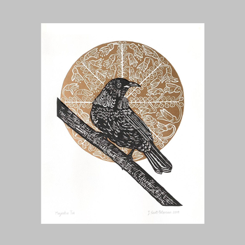 Majestic Tui Linocut Print 405mmx 505mm