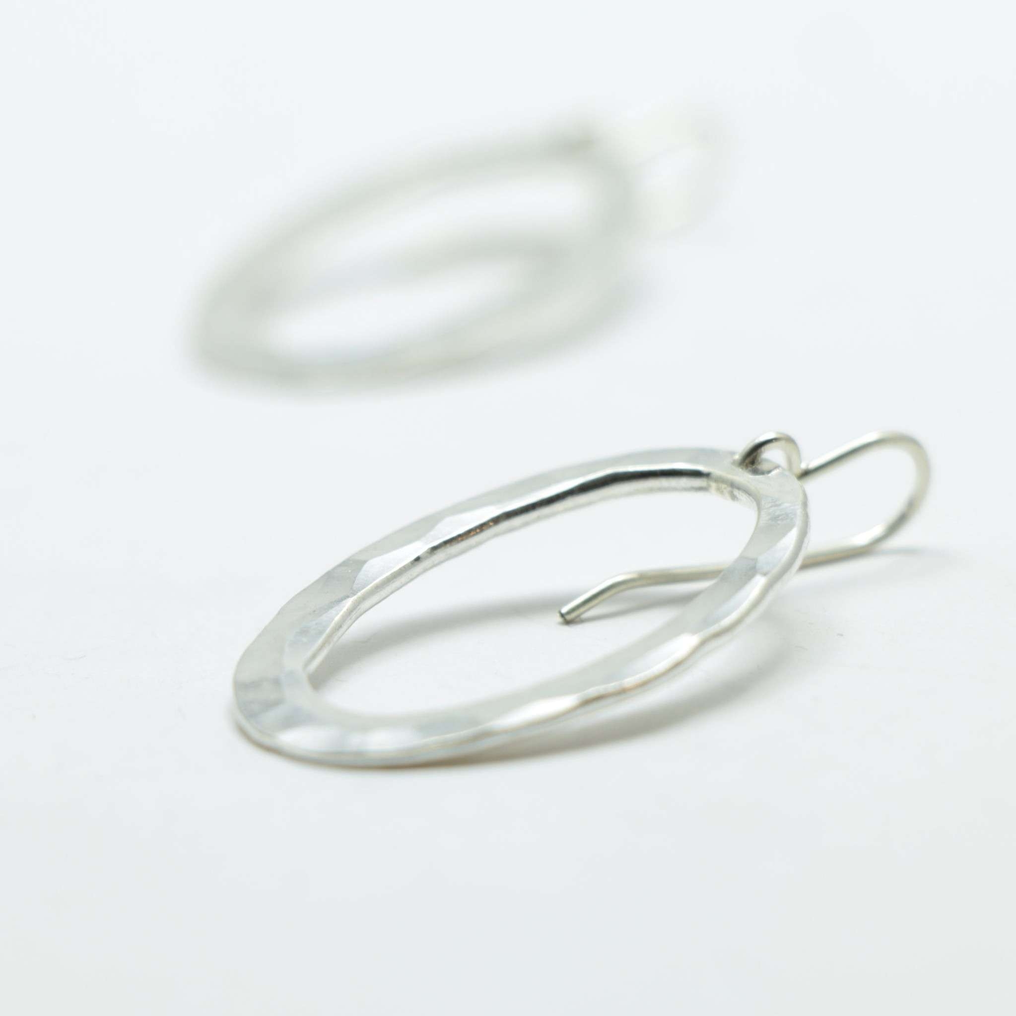 Hand forged pure silver oval shaped hoops with hand made sterling silver hooks.
