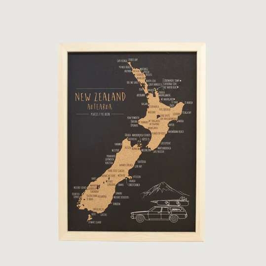 Unleash your inner wanderlust with this New Zealand Cork Map! This beautifully framed map allows you to mark all the places you've visited in Aotearoa with pins, inspiring you to plan your next adventure. perfect for any travel enthusiast, this map adds a touch of wanderlust to any room.