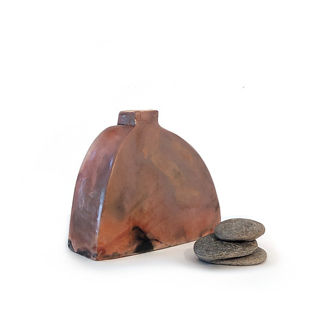 Because this traditional process leaves the clay porous and matte, this piece is intended for dried flower arrangements or to be enjoyed as a standalone sculptural work. It is a beautiful, tactile connection to the raw origins of pottery.