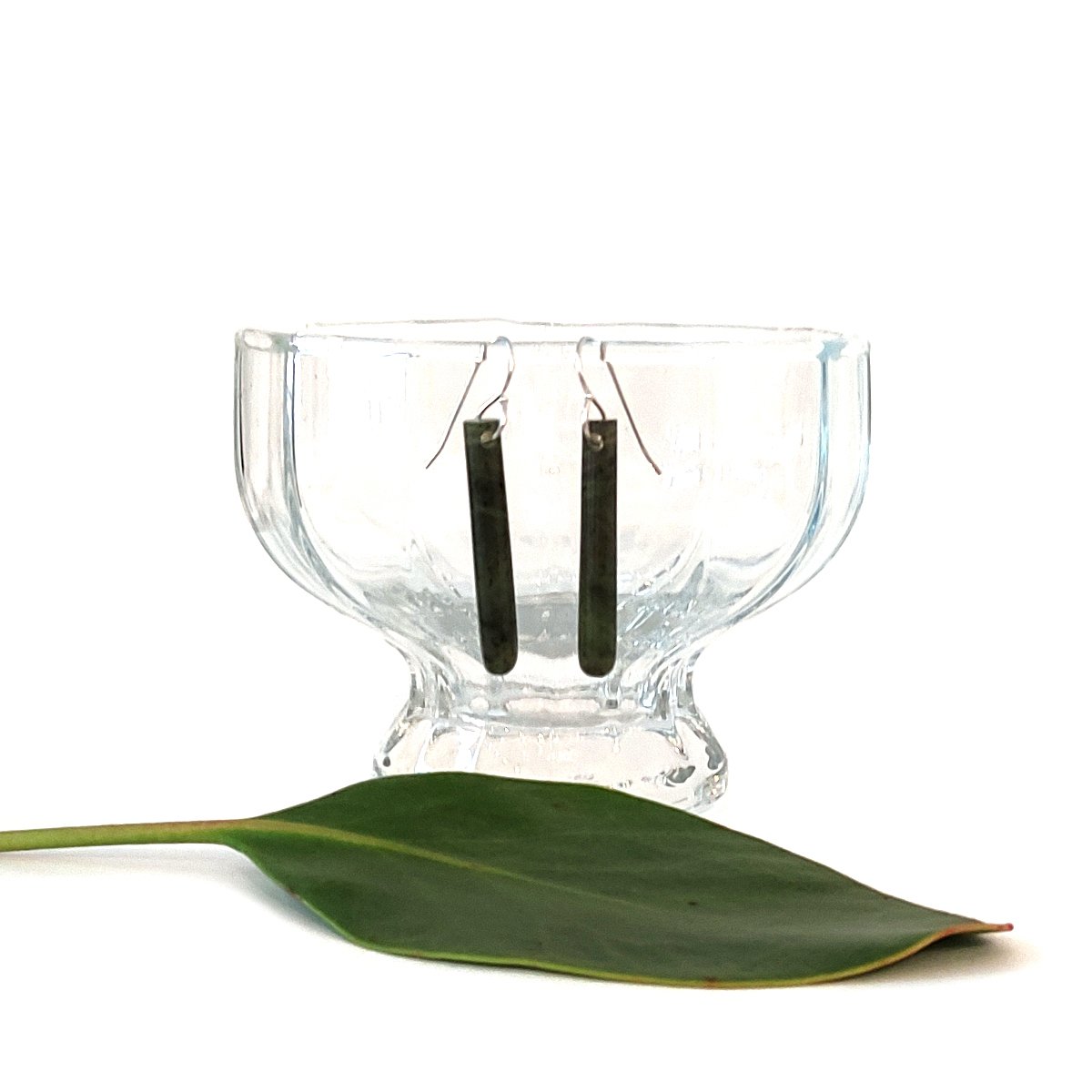 Hand carved by Kristal Thompson(Ngāti Paoa and Ngā Puhi). New Zealand Pounamu (NZ greenstone) earrings on sterling silver hooks.
