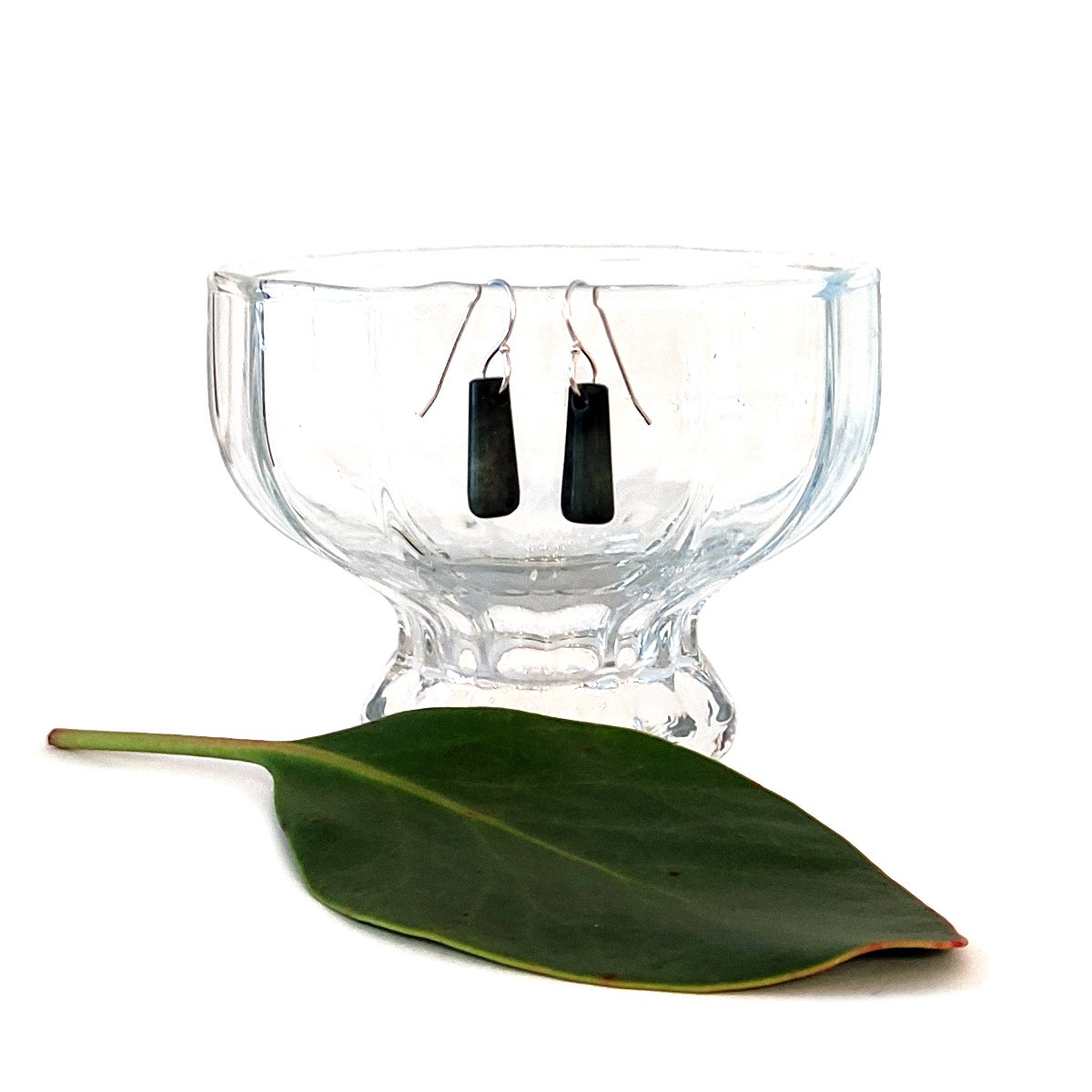Hand carved by Kristal Thompson (Ngāti Paoa and Ngā Puhi). New Zealand Pounamu (NZ greenstone) earrings on sterling silver hooks.