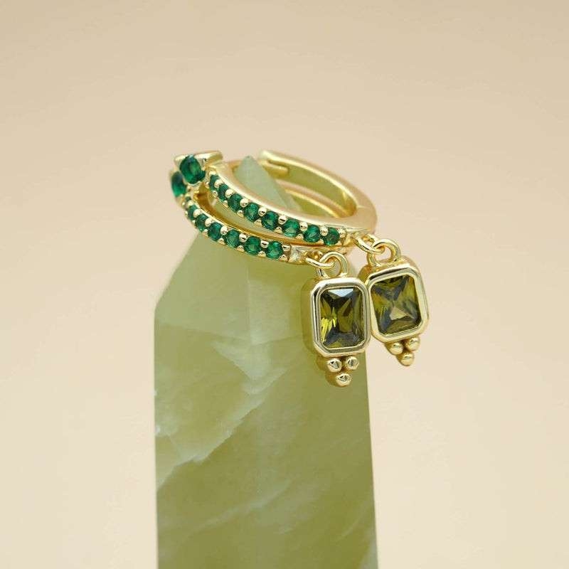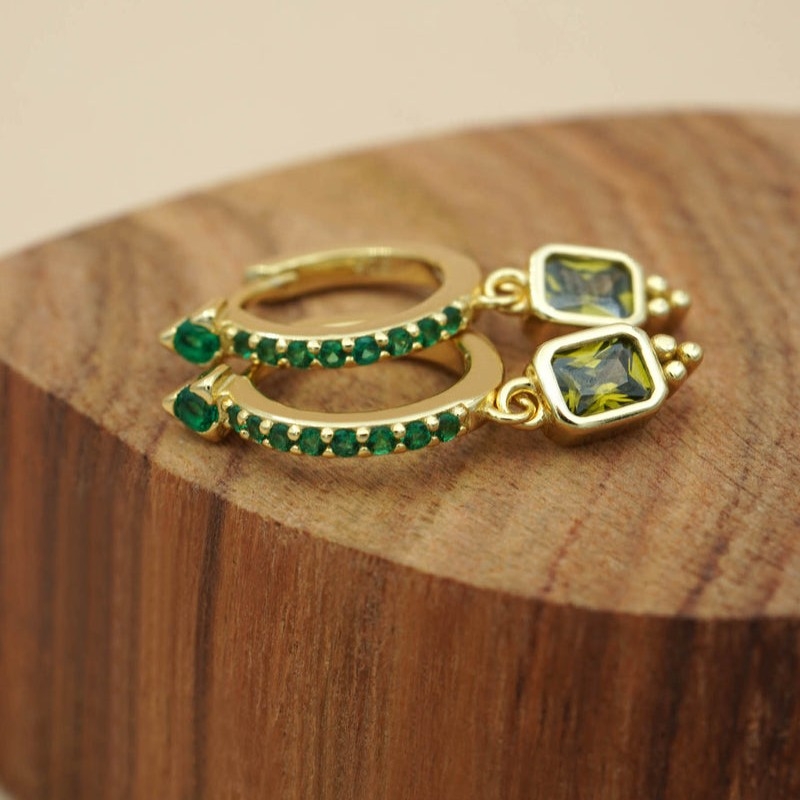 Featuring green cubic zirconia stones, these hoops embody the spirit of renewal and hope. Wear them as a radiant reminder to embrace each day with positivity and enthusiasm, celebrating the beauty and potential of new beginnings.