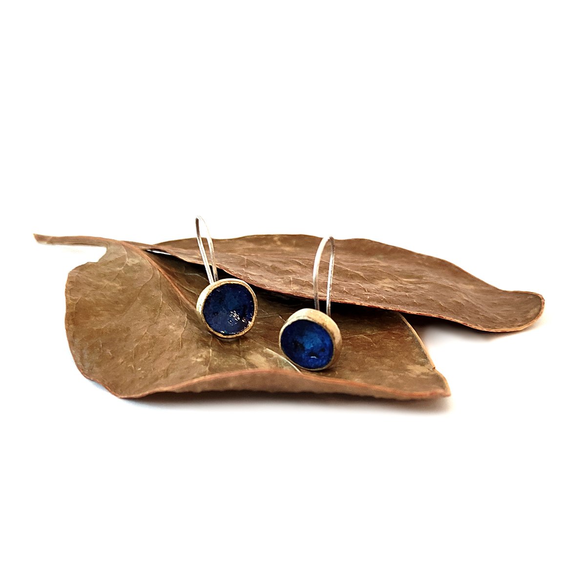 Rock Pool Earrings Brass Patina Blue