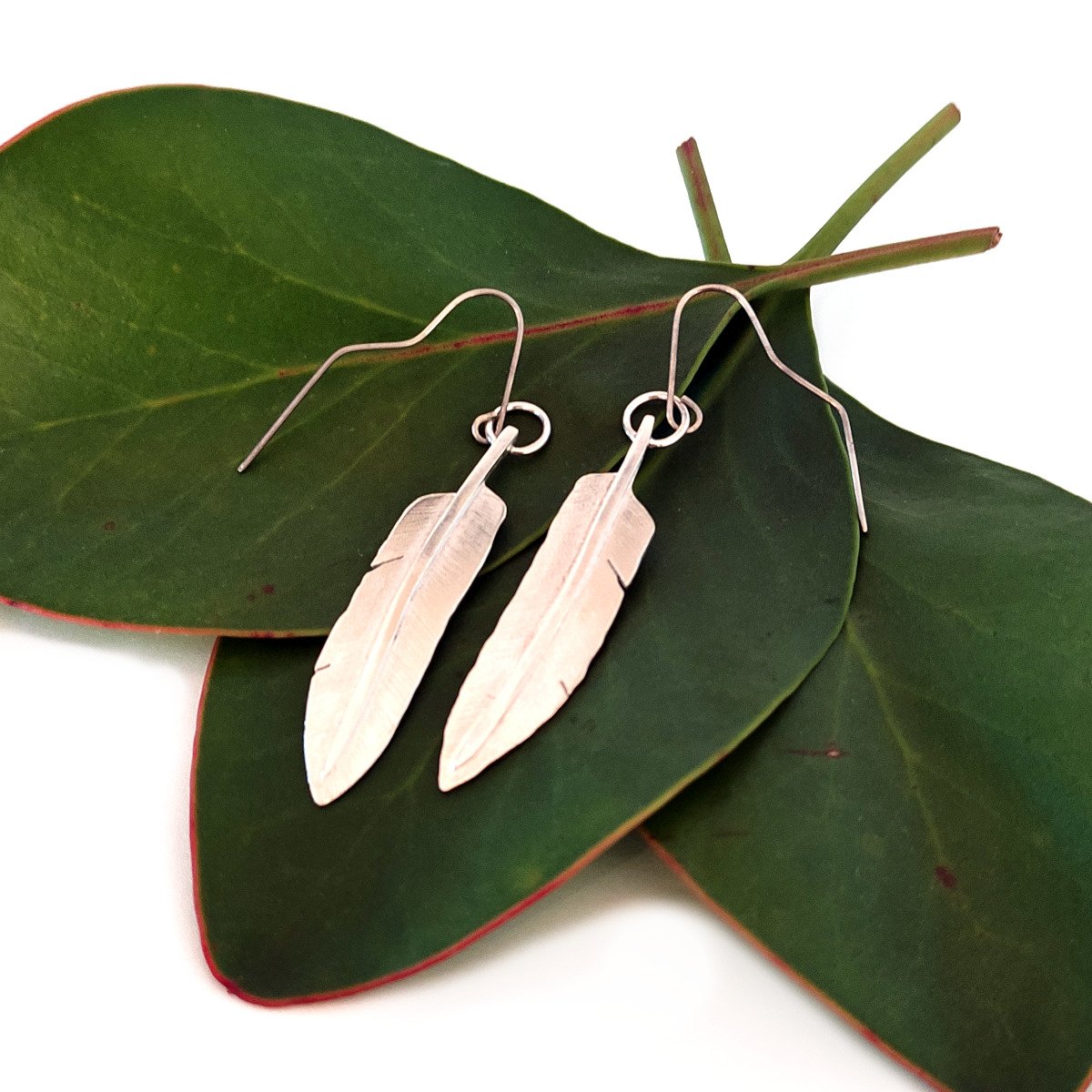 Seagull Feather Earrings Silver Large