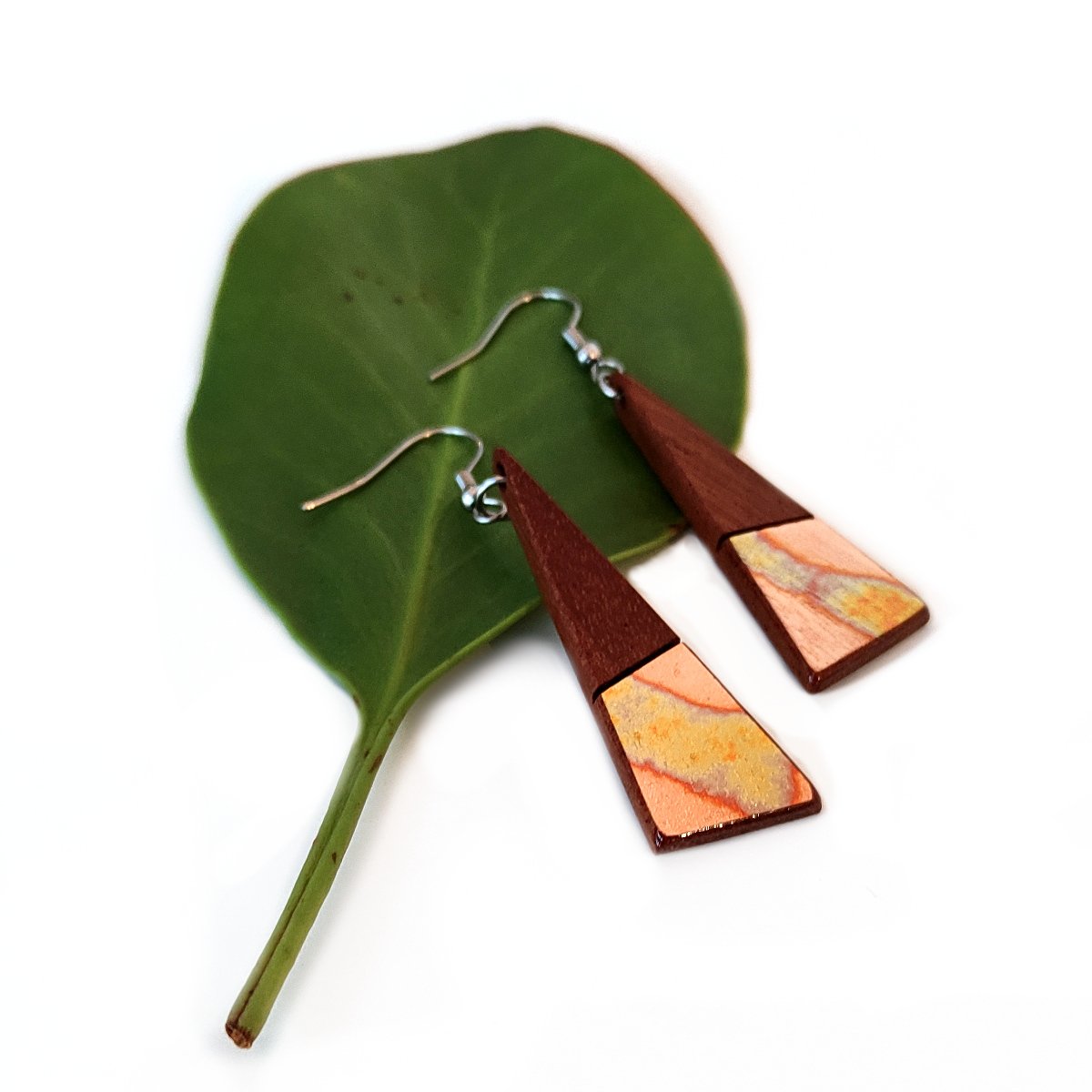 If you are into drop earrings with a touch of variegated foil, these are for you. Liberation Jewellery are the masters of recycling - these are made from recycled Mahogany from an old headboard and finished with a gorgeous variegated foil.