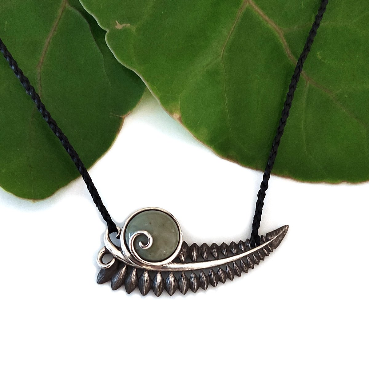 This exquisite Silver Fern pendant is a true labour of love, meticulously hand-carved by Maddy from Kawakawa Stone. The central focus is a beautifully shaped and polished jade cabochon, which is securely set within a custom sterling silver frame. Every step of the creation process is guided by Maddy's hand, from the initial detailed carving of the stone, to the precise sculpting of the wax model used to cast the final silver setting. This ensures a piece of unparalleled quality and artistry.