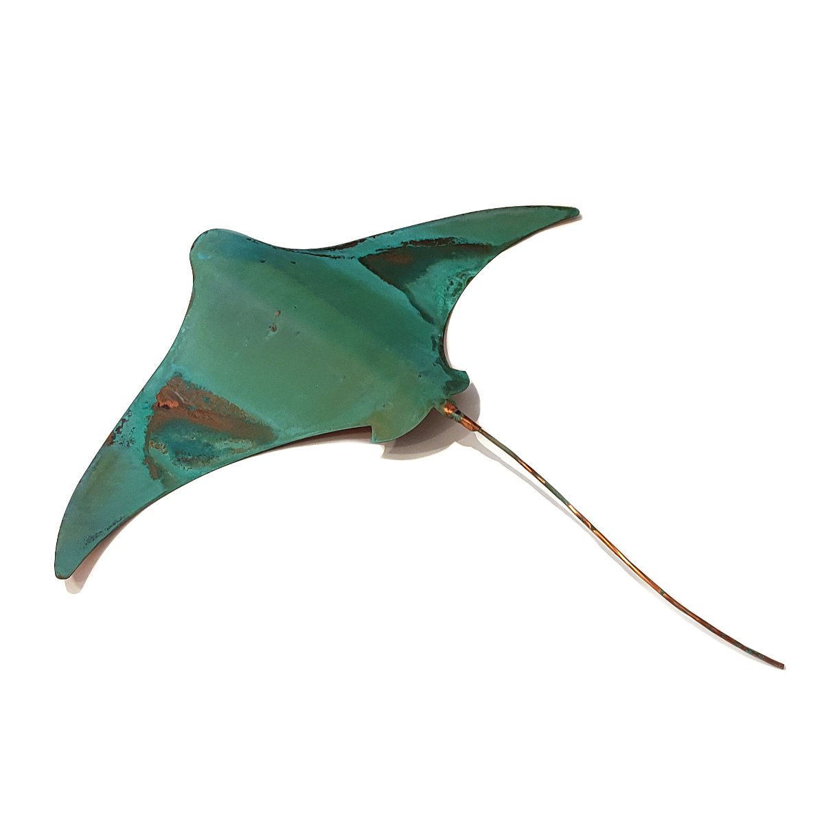 An eye-catching Stingray crafted by Daniel Wright from recycled copper. This stingray is designed to bring a touch of the ocean to your walls and boasts its own unique patina finish, ensuring a one of a kind display.