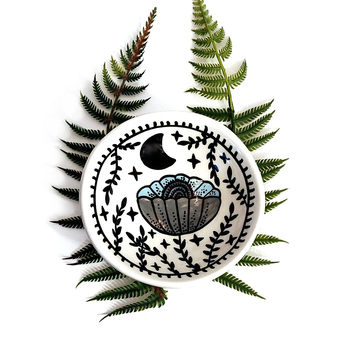 This beautiful ceramic bowl has been handcrafted by Borrowed Earth. It’s part of their magic garden range and each pattern has been lovingly hand painted with its own unique pattern.