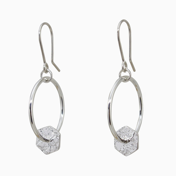 Textured hexagons appear to be suspended in mid-air with these stunning sterling silver drop earrings. Aurelium jewellery comes in their signature card box.Drop length: 43mmHoops: 27mm x 25mmSterling SilverPlease Note: Aurelium jewellery has been individually handcrafted and may differ slightly to the product shown in the photo.Click here for more info on Arelium and to see more of the range