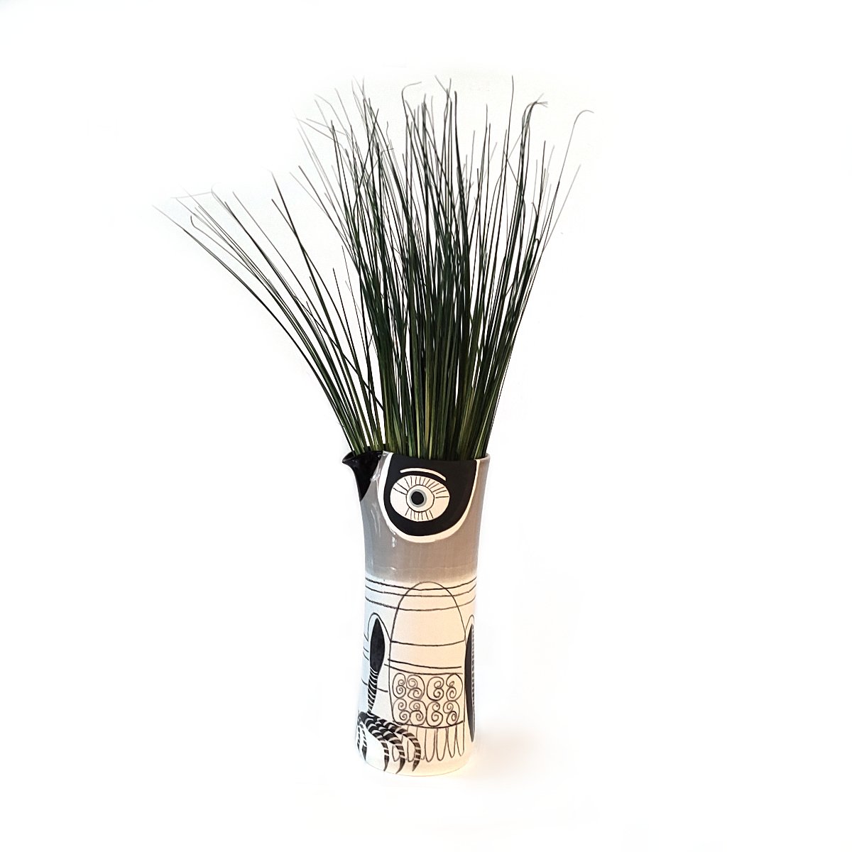 This fun Bird Jug / vase has been lovingly handmade by New Zealand ceramic artist Kairava Gullatz. It looks great with a beautiful bunch of flowers or can be displayed without flowers as a sculptural piece of art.