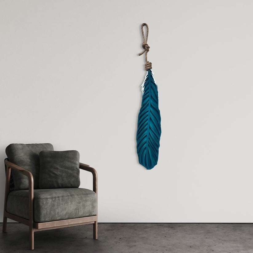 Transform your space with the hanging Tui feather. This layered wall art captures the elegance of one of New Zealand's most beloved native birds - every paint choice, every cut detail is designed to bring depth, colour, and life into your home.
