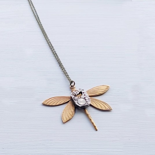 This beautiful dragonfly pendant is a real statement piece. With an Art Deco aesthetic created by the lovely lines on its long, elegant wings and sleek tail. A gorgeous rectangular watch movement sits on its back, to complete the look.