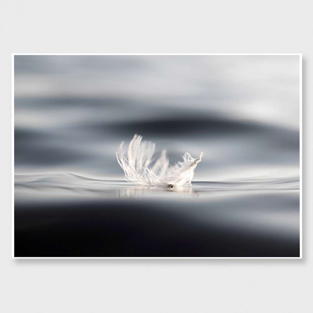 Minimal, immersive, and quietly powerful. Weightless distils calm into its simplest form - a delicate feather suspended on water. It invites a slower gaze, a breath you didn't know you were holding. It doesn't tell a story - it gives you space to find your own.