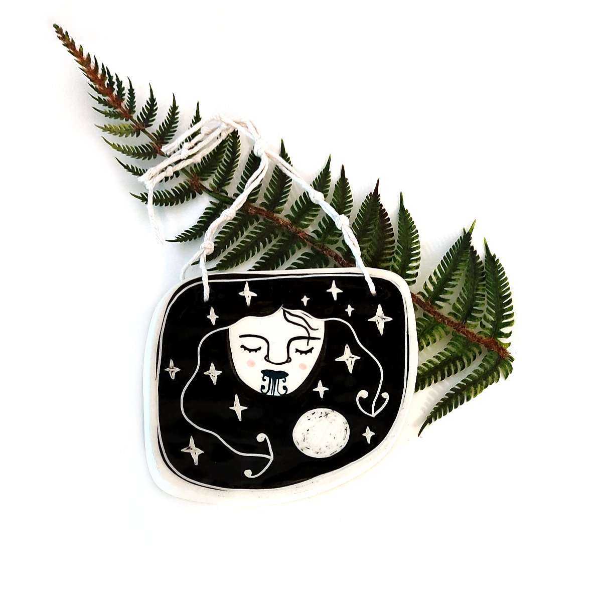 A moment of quiet reflection. This beautiful Wahine wall hanging is handcrafted by Adele at Borrowed Earth Ceramics.